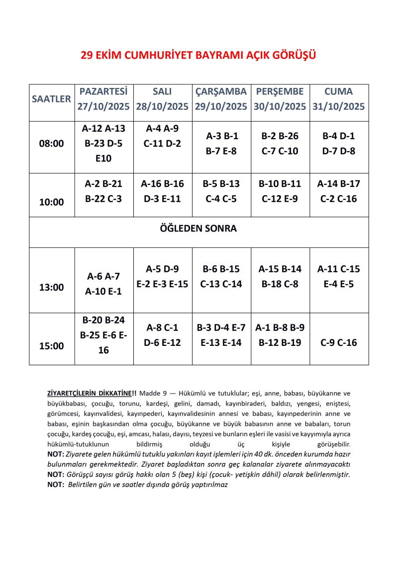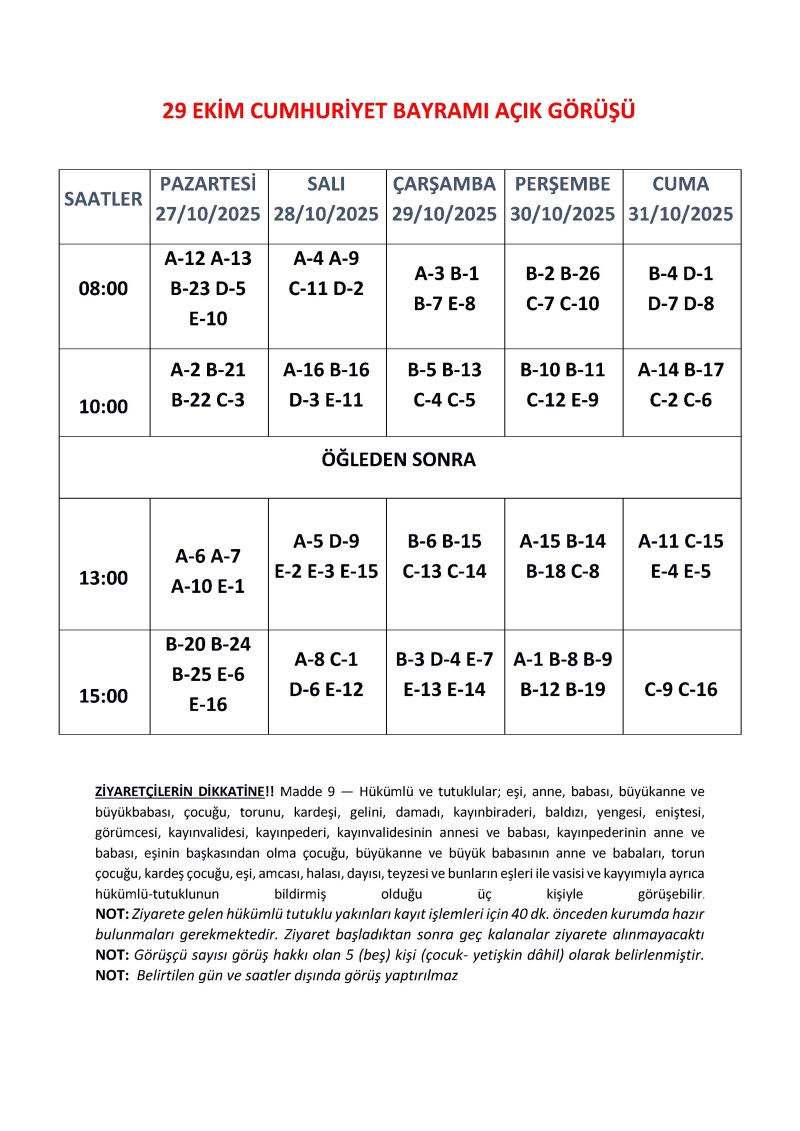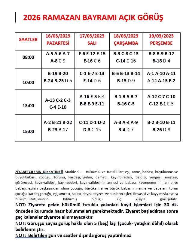 GÖRÜŞ GÜNLERİ VE SAATLERİ